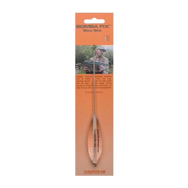 Bomba Fix mit Einrollung an jedem Ende. Die Form dieses Dobs macht ihn leicht auswerfbar, auch bei starkem Wind. Er lässt sich auch leicht einholen, weil er in einem perfekten Winkel an der Oberfläche bleibt. Außerdem lässt er sich leicht einholen, weil er in einem perfekten Winkel an der Oberfläche bleibt.Slow Sinking
